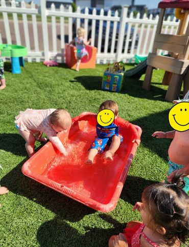 Everyday your child is learning new things and developing new skills. Here they are learning to crawl, hold their own bottle and beginning to learn ASL. As they get closer to being a year old, they will be eating table foods and walking. Everyday in this classroom is a new adventure!